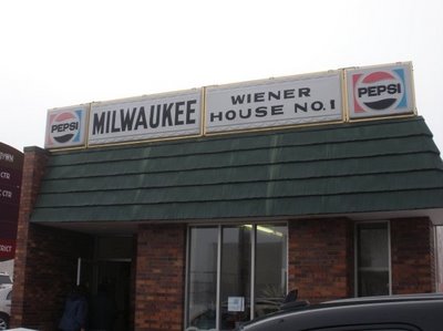 center of town – right in the middle of all the action. Now places like this have to be a destination, as most of the businesses have left and moved out by the mall. Out there you find all the usual suspects when it comes to food – Applebees, Texas Roadhouse – you know the type, the places that Office Space made fun of (not enough flair.) Most of those eateries try to recreate the atmosphere of places like the Milwaukee Weiner house, with all the pictures and memorabilia hanging on the wall. “Manufactured authenticity”… “hyper reality”… call it what you will. I’d rather eat wieners with the locals sitting on pea green vinyl booths, listening to the guy behind the counter ask me what I want…only to tell me that he has just that many wieners left.